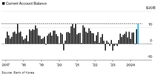 智通财经APP获悉,全球市场对人工智能芯片及其他技术的强劲需求推动了韩国经济的增长,使其经常账户在六年多的时间里实现了最大的顺差。根据韩国央行周三公布的国际收支数据,6月份韩国的经常账户净盈余达到了123亿美元,这是自2017年9月以来的最高水平。半导体和通信设备出口的显著增长,以及原材料和资本货物进口的减少,共同促成了这一盈余。此外,金融账户的净资产也大幅增加了122亿美元,创下了2020年10月以来的最大增幅。
