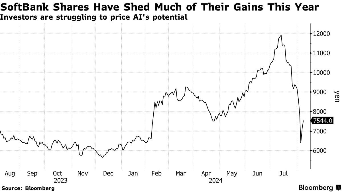 软银公布的2024财年第一财季业绩显示,归属于母公司的净亏损为1743亿日元,较上年同期的净亏损4776亿日元大幅收窄,但仍不及市场预期的净利润10亿日元。日元走软和愿景基金资产损失的影响超过了Arm专利使用费和许可费收入的增长。
