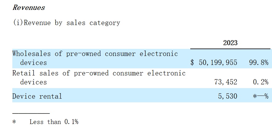 其中,二手消费电子设备的批发指的是创智环球从美国、日本和其他一些发达国家的供应商处采购和回收消费电子设备(目前主要是智能手机、平板电脑和笔记本电脑),再将上述设备批发予东南亚和其他地区的客户。