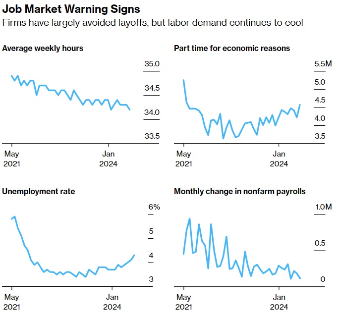 即使利率处于20多年来的最高水平,美国经济也出现了降温的迹象,但受疫情时期工人短缺影响的企业在很大程度上避免了裁员。相反,他们减少了招聘,减少了职位空缺,缩短了工作时间。但最近的数据引发了人们的担忧,雇主可能很快就会走到山穷水尽的地步,并加快裁员的步伐。