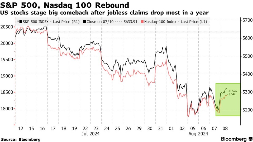 周四,美国股市大幅上涨,此前公布的数据显示,美国上周首次申请失业救济人数创一年来最大降幅,这平息了市场对经济放缓的担忧。标普500指数周四下午飙升约2%,有望创下2月份以来的最佳单日涨幅。