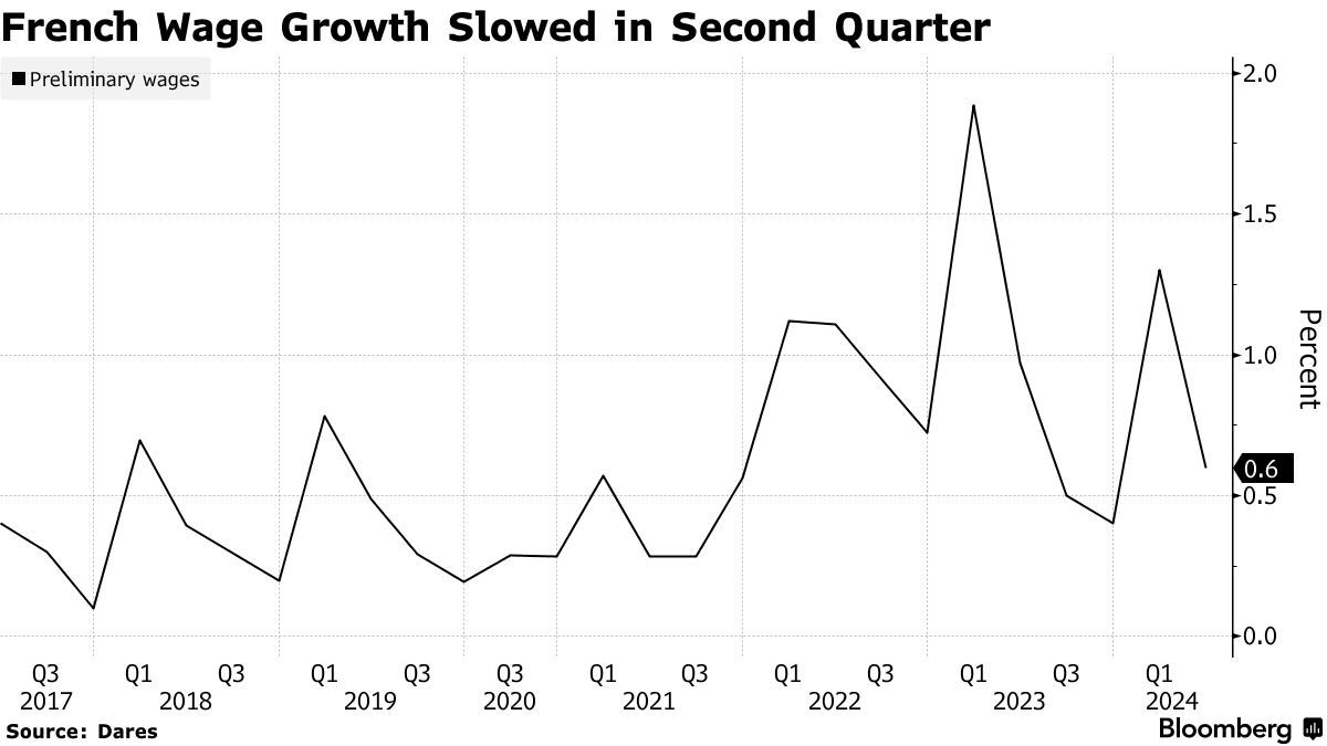 此外,另一份数据显示,法国第二季度私人未季调月薪环比增长0.6%,低于第一季度的1.3%。