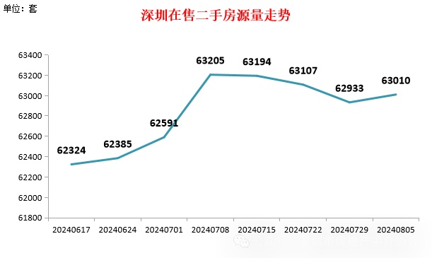 智通财经APP获悉,根据深房中协公开在售二手房源量数据统计,2024年8月5日,深圳市共有63,010套有效二手房源在售,较上周增加77套,小幅回升。其中龙岗较上周增加61套,有效在售16,504套,罗湖较上周增加31套,有效在售8,247套,坪山较上周增加27套,有效在售1,070套。