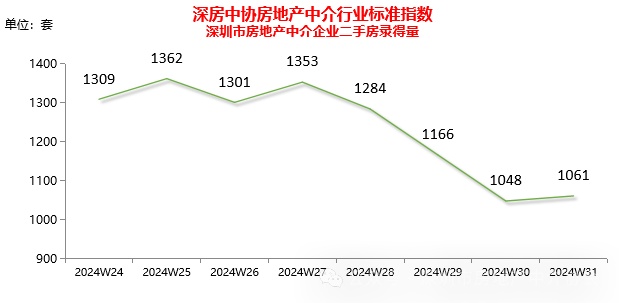 经深房中协统计,2024年第31周(7.29-8.4)深圳市二手房(含自助)录得1,061套,环比增长1.2%。二手房交易量止跌回升,分析可能与7月22日房贷利率再次下调正相关,周交易量能否持续保持千套以上还有待持续观察。