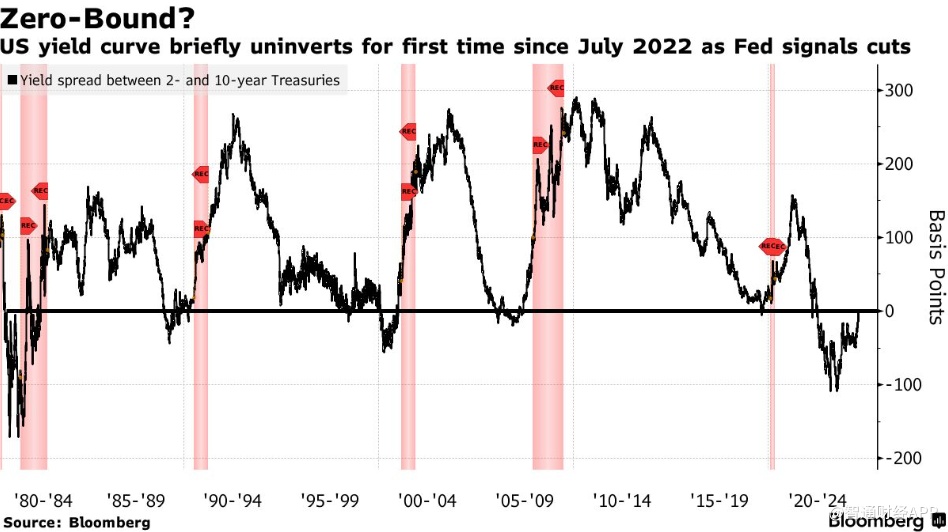 美国2年期和10年期国债收益率之差在上周初转为正值,为两年来首次,此前四次衰退之前都出现过这种情况。随着焦虑情绪的消退,美债收益率再次出现倒挂,但现实情况是,自疫情扰乱了正常的商业活动以来,经济并没有发出可靠的信号。