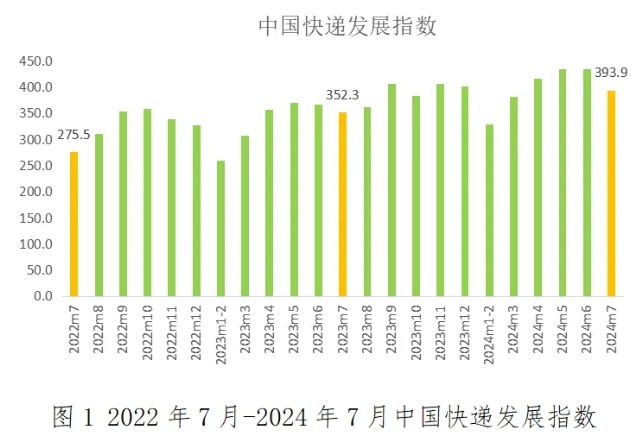 智通财经APP获悉,国家邮政局数据显示,经测算,2024年7月中国快递发展指数为393.9,同比提升11.8%。其中发展规模指数、服务质量指数和发展能力指数分别为508.8、564.7、218.6,同比分别提升31.1%、0.7%、7.3%,发展趋势指数为62.5。7月,快递业保持稳中向好发展态势,智能装备加快应用,跨境服务继续优化,发展效能稳步提升。