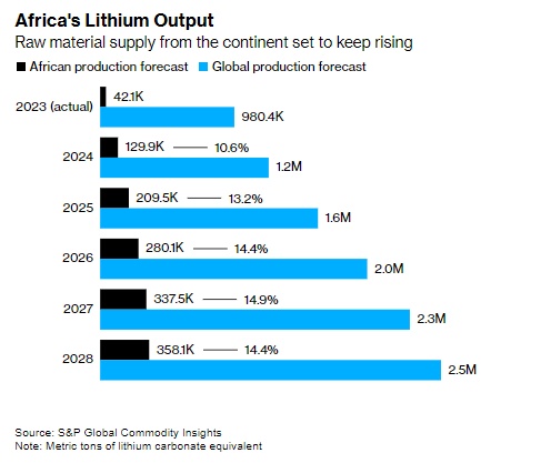 根据标普全球大宗商品洞察的数据,预计非洲今年将占全球供应的近11%,而本世纪初这一比例接近于零。预计到2028年,这一比例将增至14%以上。