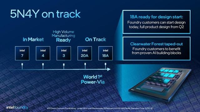 根据智通财经APP了解,英特尔于2021年发布了“四年内五个节点”的制程节点路线图,截至目前Intel 7和Intel 4工艺节点已投放市场,Intel 3工艺节点就准备就绪,可以进行大批量生产(HVM)。