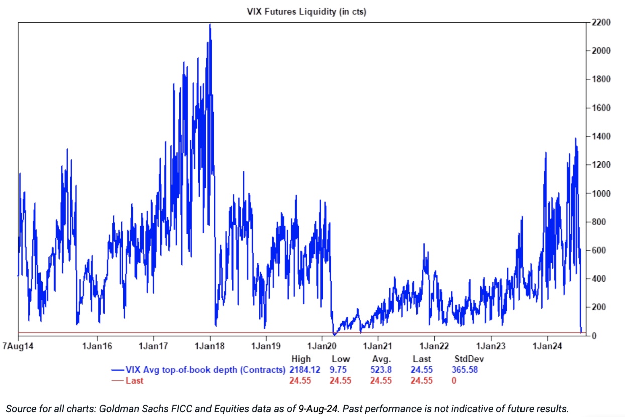 此外,高盛还提到,VIX期货的流动性目前处于历史最低水平,这可能会对市场波动性产生进一步影响。