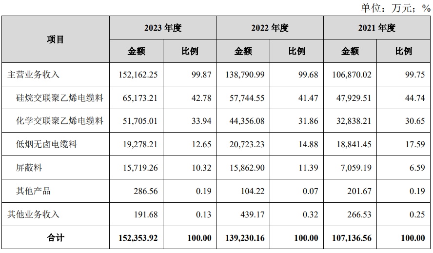 招股书披露,太湖远大是一家集环保型线缆用高分子材料研发、制造、销售、服务为一体的国家高新技术企业、国家级专精特新“小巨人”企业,主要产品有“太湖远大”牌硅烷交联聚乙烯电缆料、化学交联聚乙烯电缆料、低烟无卤电缆料、半导电内外屏蔽料以及其他规格电缆用特种产品系列,公司亦可根据客户要求研发具有特殊性能的高分子材料。