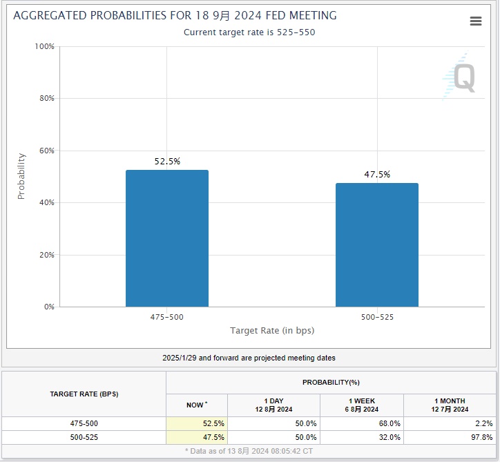 数据公布后,市场已经完全消化了美联储9月降息的预期,交易员还提高了9月降息50个基点的可能性,概率超过50%。