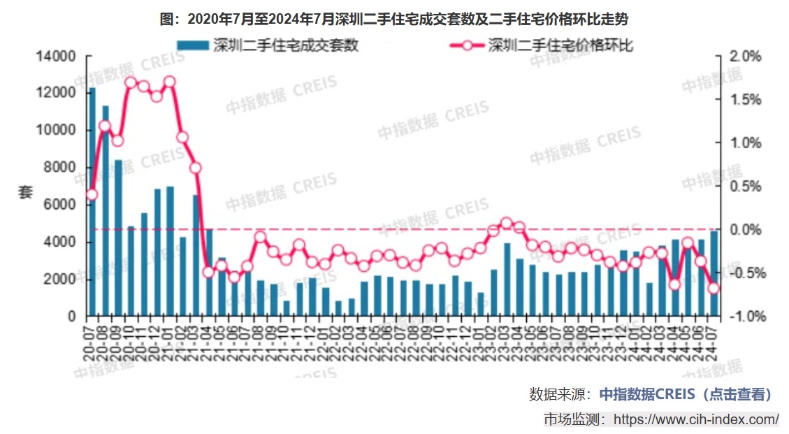 深圳:7月二手房表现优于新房市场,成交量环比增长一成,二手住宅价格环比跌幅扩大