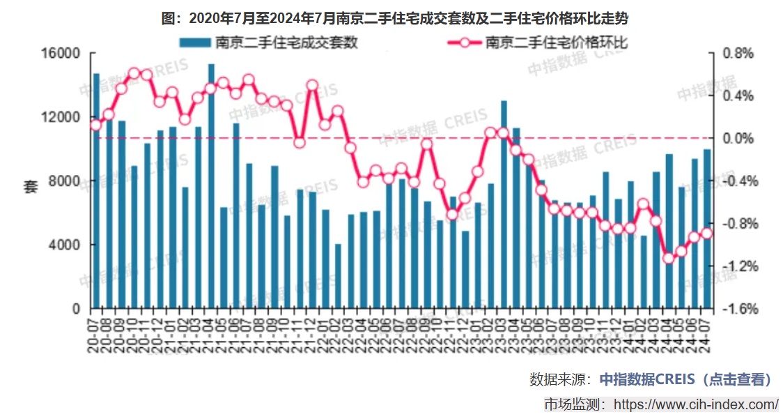 7月,南京二手住宅价格环比跌幅继续收窄,成交量维持一定规模。7月南京二手房市场活跃度持续,二手住宅成交9965套,环同比分别增长5.6%、46.0%,但房价短期仍继续调整,7月南京二手住宅价格环比下跌0.90%,跌幅较6月收窄0.03个百分点。