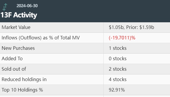 据统计,凯雷第二季度持仓总市值为10.5亿美元,相比之下上一季度的总市值约为15.9亿美元,环比下降34%。凯雷在第二季度的美股投资组合中仅仅新增一只个股,减持了4只个股,并且清仓2只个股。其中前十大持仓标的占凯雷持仓总市值的92.91%。