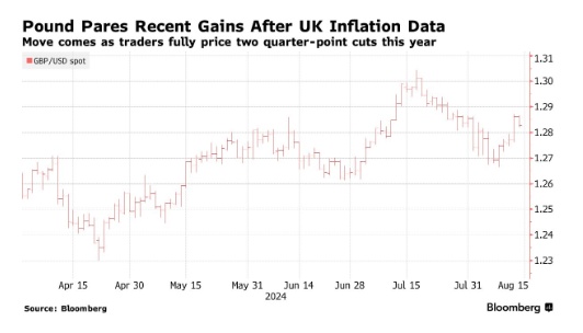 数据公布后,英镑兑美元下跌,回吐了五周来的首周涨幅。英镑仍然是今年表现最好的货币,主要是因为投资者押注英国央行将维持相对于其他主要央行的高利率。对货币政策变化最敏感的英国两年期国债收益率下跌至8月5日以来的最低水平。