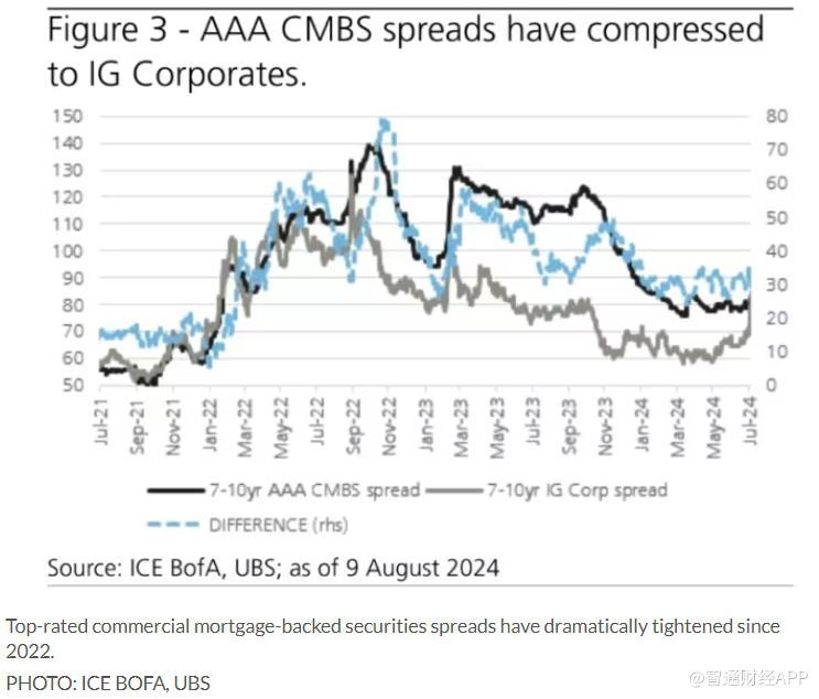 当两年前CMBS利差(即投资者获得的超出无风险国债利率的补偿)较大时,瑞银首席投资办公室将投资级CMBS列为“最优选择”,但现在已将其评级下调为“中性”。