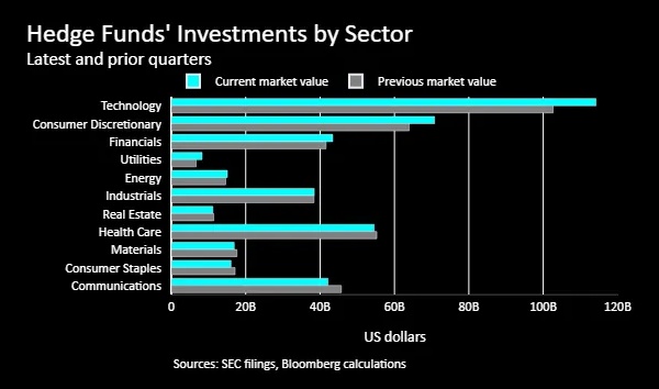 到目前为止,媒体对674家对冲基金提交的13F文件进行了分析。这些对冲基金截至第二季度末的总持仓为4434.6亿美元,而截至第一季度末的总持仓为4272.2亿美元。分析显示,科技股在对冲基金投资组合中的权重最大,达27%;其次是非必需消费品类股,达16%。在所有行业中,通信行业的投资规模降幅最大,增幅最大的是科技行业。