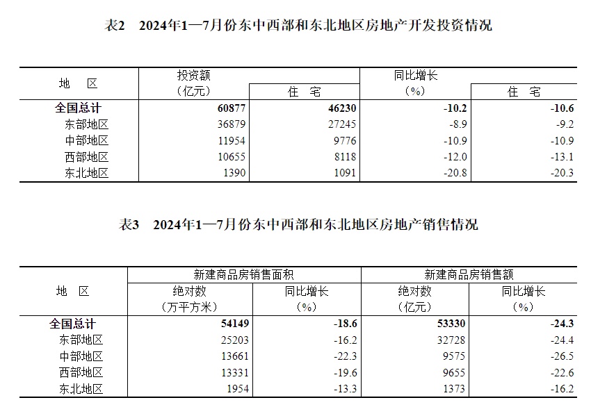 表1 2024年1—7月份全国房地产开发和销售情况
