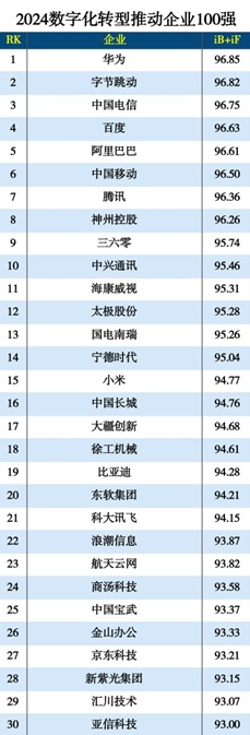智通财经APP获悉,近来,数字化和智能化的关注度持续升温。日前,由德本咨询、互联网周刊、中国社会科学院信息化研究中心联合评选的“2024数字化转型推动企业100强”发布,华为、字节跳动、BAT等明星企业占据了榜首位置,神州控股(00861)作为一家长期深耕数字化领域的大数据高科技企业成功跻身榜单第8位,显示出公司在数字化转型领域的强大实力。