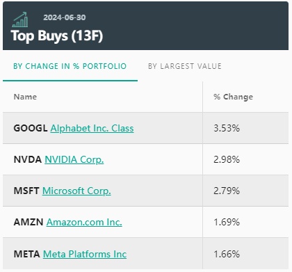 英伟达位列第四,持仓约970万股,持仓市值约12.0亿美元,占投资组合比例为5.56%,较上季度持仓数量大增87.96%。