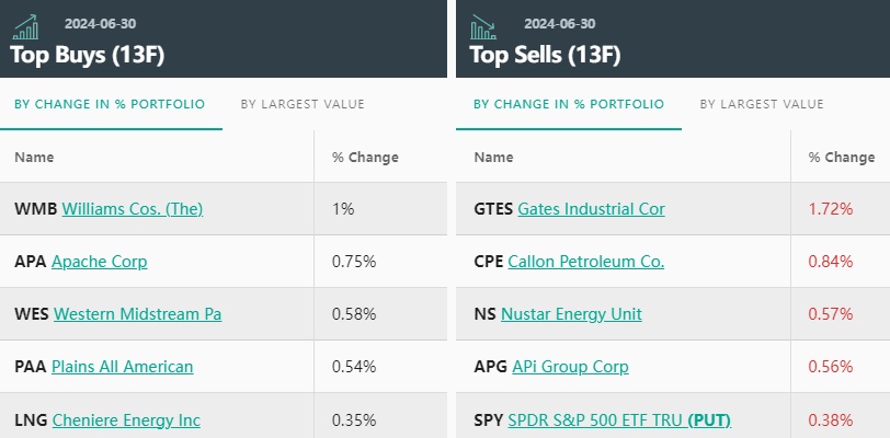 从持仓比例变化来看,黑石第一季度的前五大买入标的分别是:威廉姆斯(WMB.US)、阿帕奇石油(APA.US)、Western Midstream(WES.US)、Plains All American(PAA.US)和Cheniere Energy(LNG.US)。