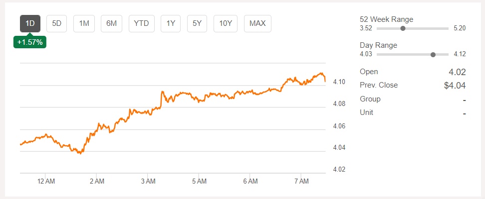 周四,铜期货上涨1.57%,至4.10美元。