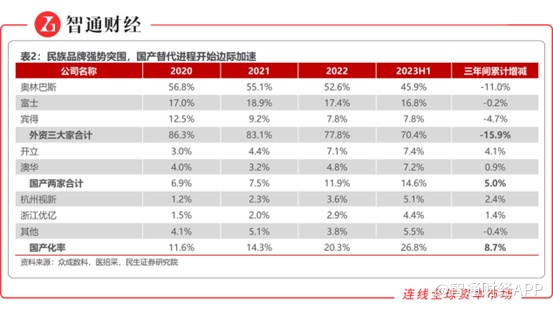 高频+多维政策的加码出台,推进国产内镜加速上市和进口替代,国产企业市场占有率与 2020年相比有大幅改善。