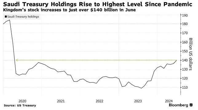 全球最大的石油生产国沙特自四月份以来一直在增持美债。