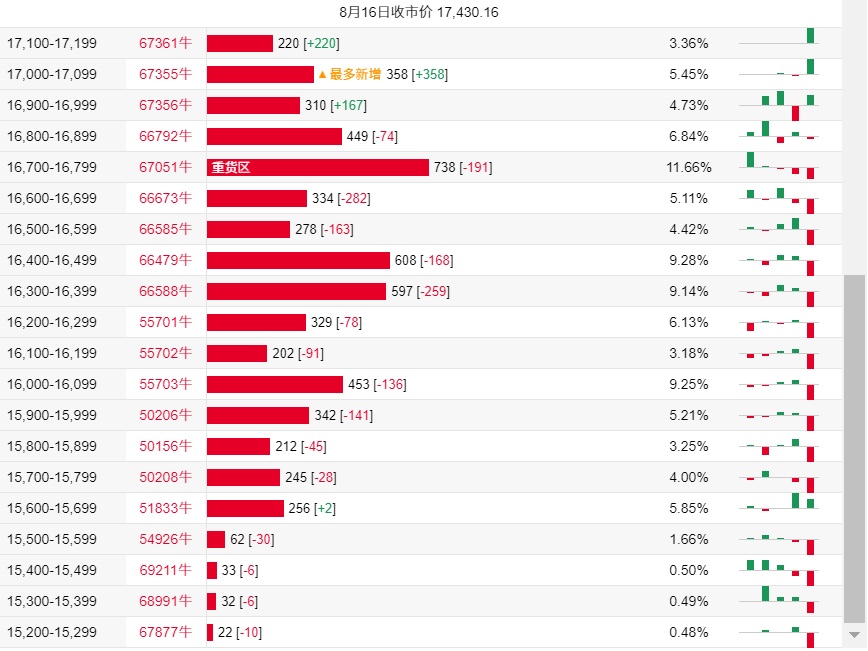 牛证街货重货区在16700-16799区间,该区间最新牛证数量为738张,较上一交易日减少191张;最多新增在17000-17099区间,该区间最新牛证数量为358张,较上一交易增加358张。