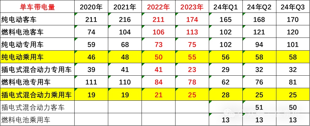 2024年1-7月的电池能量密度160以上的车型占比14%,相对于2023年的18%出现了明显的下降,这主要还是磷酸铁锂电池对三元替代带来的能量密度下降。而125以下的能量密度的产品从2023年9%下降到了目前2024年的4%的比例,3季度降到1%。