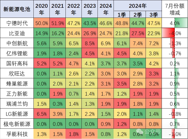 原有的电池的格局没有明显变化,看谁投资多,然后谁就能获得较大的市场份额,因此形成主力电池企业扩张表现持续较强的特征;而中小型电池企业也有靠技术或其它方面突破获得一定增长的机会。因此,电池格局在高速增长中应该说总体相对稳定。
