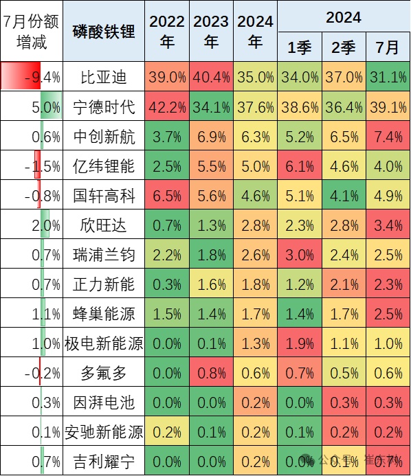 磷酸铁锂电池的产品差异优势明显。亿纬锂能和中创新航表现较平稳。欣旺达、瑞浦兰鈞、极电新能源的提升明显。