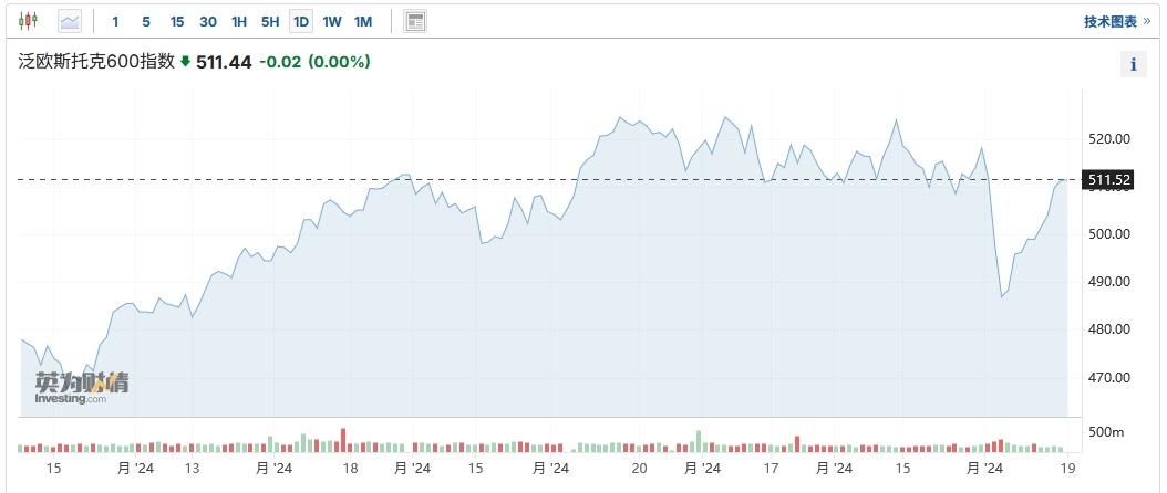 智通财经APP获悉,欧洲股市在上周大幅上涨后,周一表现低迷。截至发稿,泛欧斯托克600指数跌0.02点,报511.44点。基本资源类股和汽车类股表现优异,但被科技股的疲软表现所抵消。数据显示,泛欧斯托克600指数在7月中旬开始回升,上周累计涨2.46%,为5月以来的最大单周涨幅。