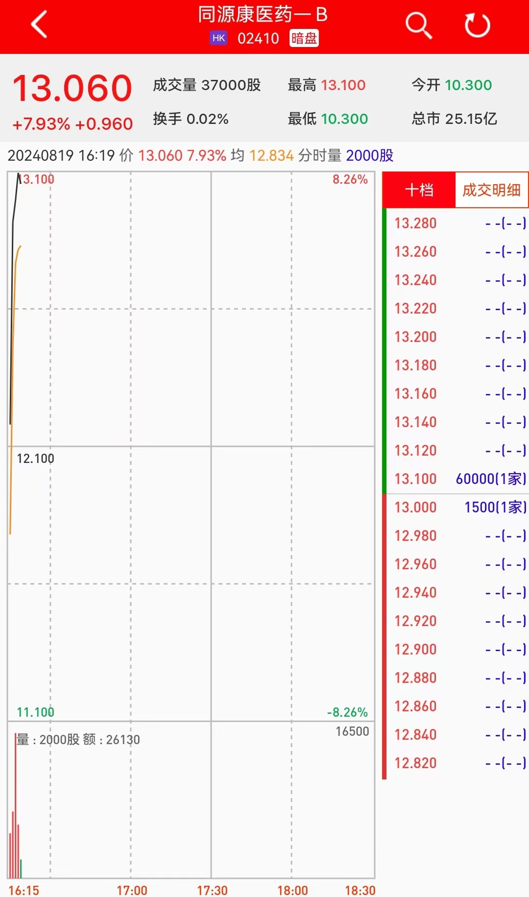 智通财经APP获悉,同源康医药-B(02410)将于8月20日(周二)在香港挂牌。截至发稿,利弗莫尔证券暗盘交易显示报价13.06港元,较招股价12.10港元上涨7.93%。每手500股,不计手续费,每手赚480港元。