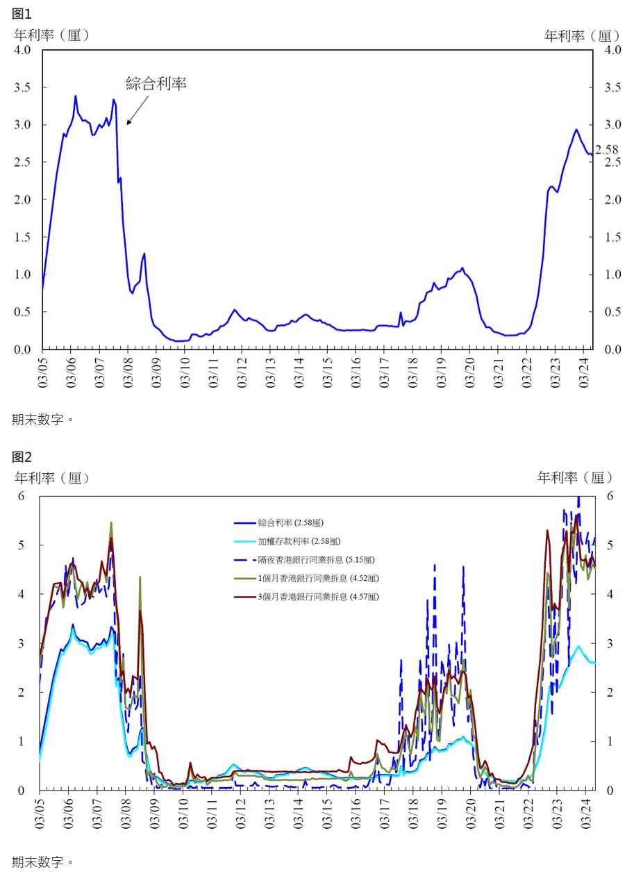 智通财经APP获悉,8月19日,香港金融管理局公布2024年7月底的综合利率。反映银行平均资金成本的综合利率在2024年7月底为2.58厘,较2024年6月底的2.62厘下跌4基点。综合利率下跌,主要反映月内存款的加权资金成本减少。