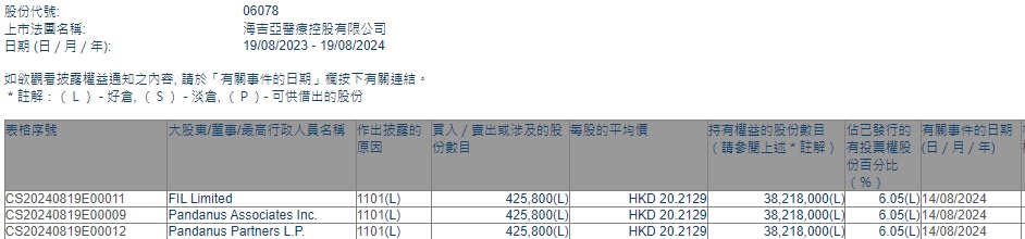 智通财经APP获悉,香港联交所最新资料显示,8月14日,富达国际增持海吉亚医疗(06078)42.58万股,每股作价20.2129港元,总金额约为860.67万港元。增持后最新持股数目为3821.8万股,最新持股比例为6.05%。