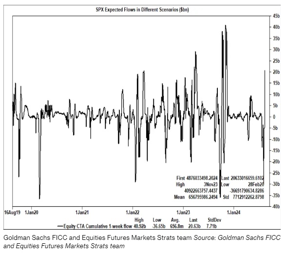 Rubner认为,大宗商品交易顾问(CTA)将进行所谓的“绿色扫荡”,即无论市场走势如何,这些基金都很可能会买入股票。在芝加哥期权交易所波动率指数出现历史上最大的九天波动率下降后,预计仓位与实际波动率相反的波动率控制基金将增加敞口。