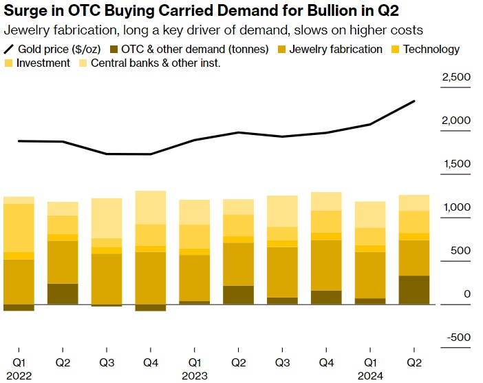 场外交易市场的需求可能很难追踪,但这是今年金价上涨的一个重要支撑。场外交易市场的交易是通过交易商或买卖双方直接进行的,没有通过交易所或清算所。
