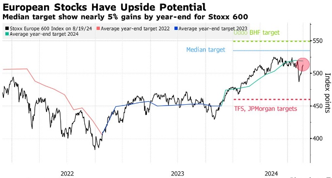 随着全球市场在8月初动荡下跌后反弹,欧洲股市也迅速收复失地。喜忧参半的经济数据和大量交易的大幅平仓,都不足以持久破坏股市涨势,投资者寄望于降息来支撑股市估值;与此同时,财报季令市场安心,这使得策略师们相对看涨。