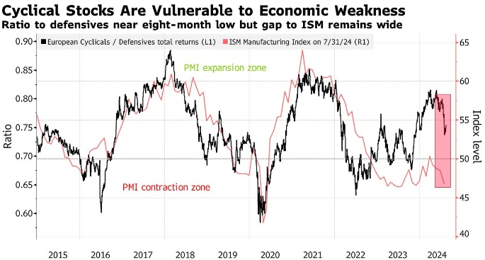 以Sebastian Raedler为首的美国银行策略师表示:"我们仍看空欧洲股市,看空周期性股和防御型股。7月份疲弱的就业数据引发的市场波动突显出,糟糕的宏观数据对市场来说又是一个坏消息,因为投资者的关注点已从通胀担忧转向经济增长担忧。”