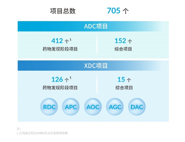 集团致力于满足全球行业多样化和变革性的需求。截至2024年上半年,取得了累积成功交付了超过11,000个生物偶联分子的里程碑。