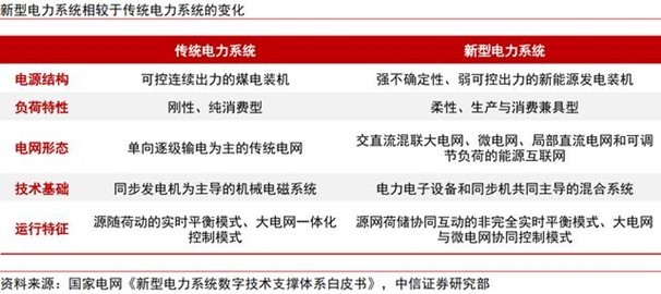 对此,中信证券指出,想要缓解新能源消纳压力,除供需关系的平衡外,还需强化电力系统的稳定性和灵活性,这需要“源网荷储”四大环节各主体的协同配合。因此,建设具备“清洁低碳、安全充裕、经济高效、供需协同、灵活智能”基本特征的新型电力系统的重要性正日益提升。