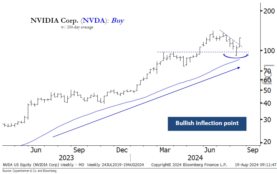 Oppenheimer资产管理公司在一份投资者报告中表示:“英伟达的主要利好因素仍然是该股的看涨趋势、高动量得分以及相对强劲的科技板块带来的投资组合利好。在交易方面,我们认为英伟达在其200日移动均线的看涨斜率上方出现了积极的拐点,表明该股恢复上行趋势。”