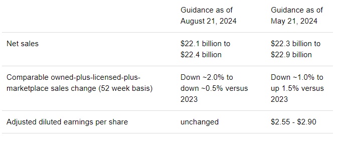 梅西百货将2024财年销售额指引下调至221亿美元-224亿美元,此前预期为223亿美元-229亿美元,但调整后每股收益指引维持在2.55美元- 2.90美元。