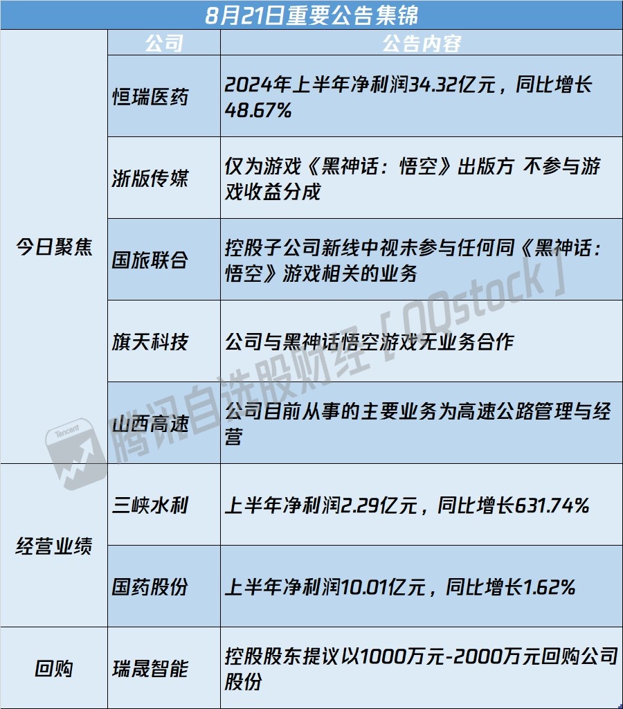 1、三峡水利:上半年净利润2.29亿元,同比增长631.74%