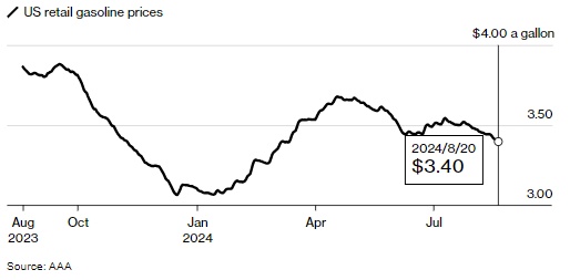 这一价格下降趋势不仅为消费者带来了实惠,也可能对美国副总统卡马拉·哈里斯所在的民主党在选举中构成利好。油价作为选民普遍关注的一个重要通胀指标,其变动往往能直接影响选民的经济感受。根据5月份彭博新闻与Morning Consult进行的一项民意调查,在七个关键摇摆州中,有三分之一的选民将燃油价格视为他们最关心的经济问题。因此,油价的下跌可能有助于缓解选民对经济压力的担忧,为民主党赢得更多民心。