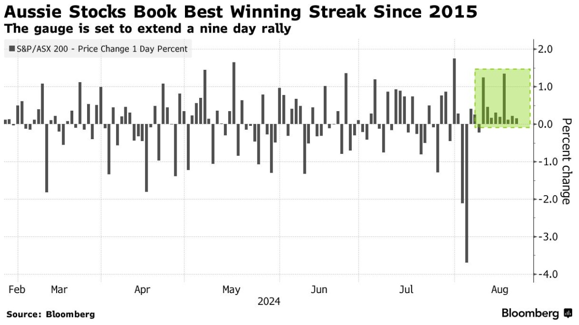 智通财经APP注意到,澳大利亚股市正处于近九年来最长的连续上涨势头,而且随着基准指数接近历史新高,涨势似乎还将继续。