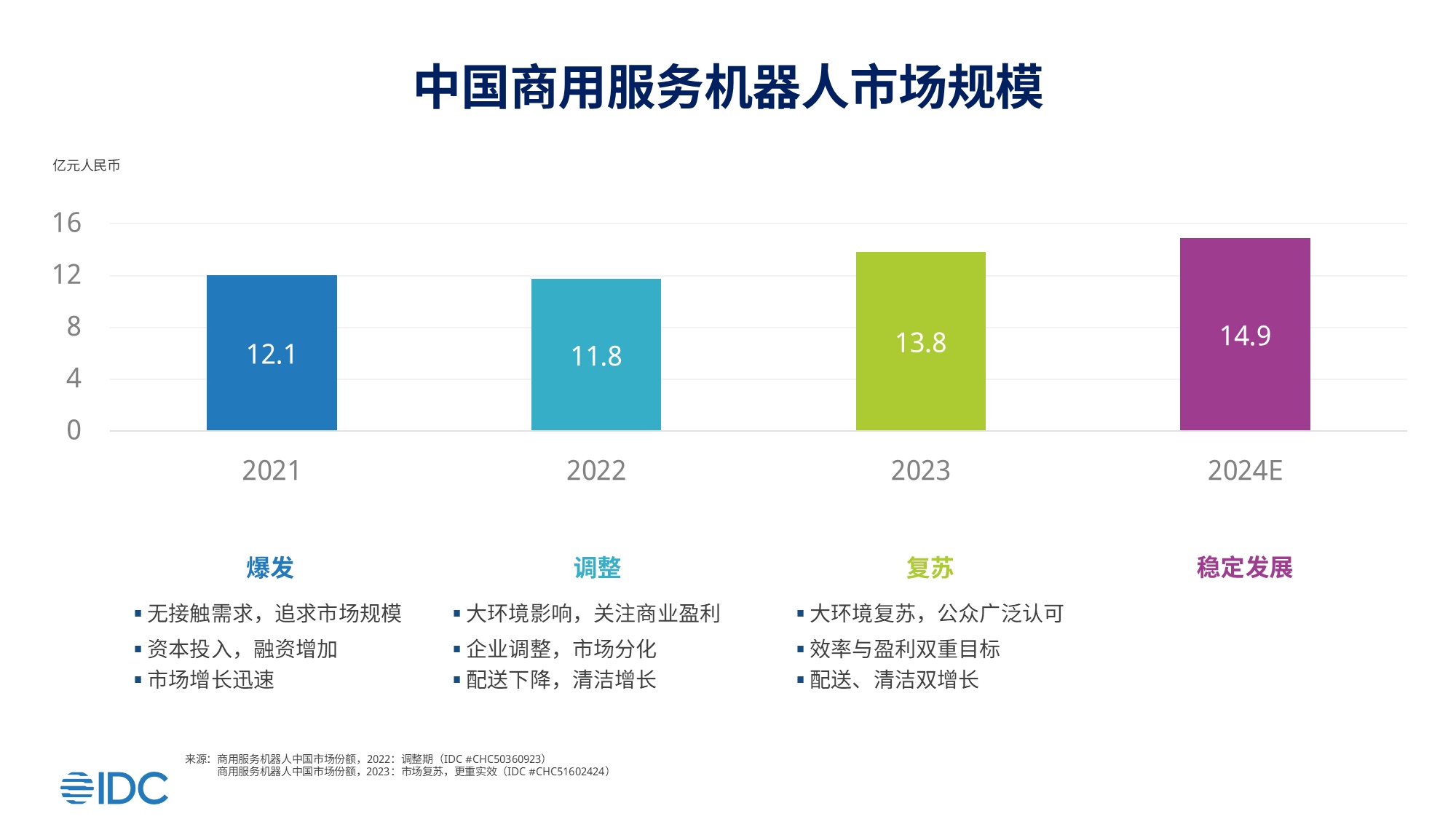 商用服务机器人是具备自主能力和人机交互能力,在公共区域提供配送、清洁、引导等服务的机器人。中国商用服务机器人市场自2021年爆发,经历了调整、复苏时期,当下正步入稳定发展期。用户关注机器人对其运营效率的改善,厂商注重经济盈利的结果。