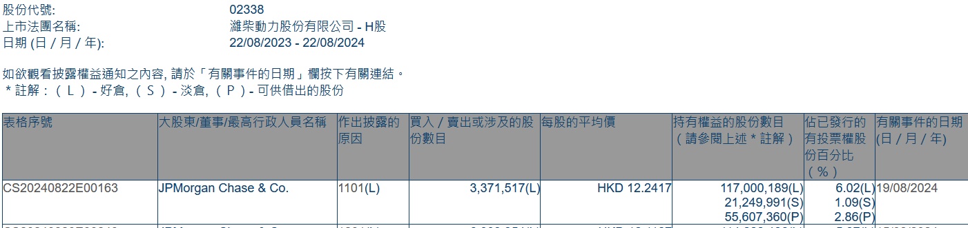智通财经APP获悉,香港联交所最新资料显示,8月19日,摩根大通增持潍柴动力(02338)337.1517万股,每股作价12.2417港元,总金额约为4127.31万港元。增持后最新持股数目约为1.17亿股,持股比例为6.02%。