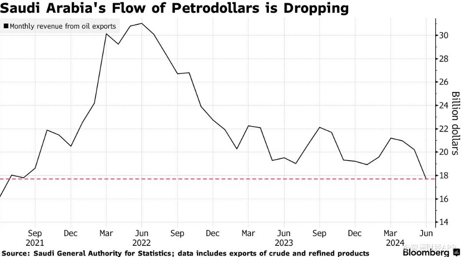 不过,石油出口收入下降阻碍了沙特的经济转型计划。据悉,2022年俄乌冲突推动原油价格飙升至每桶120美元以上。当时,沙特阿拉伯每天从石油出口中赚取10亿美元。